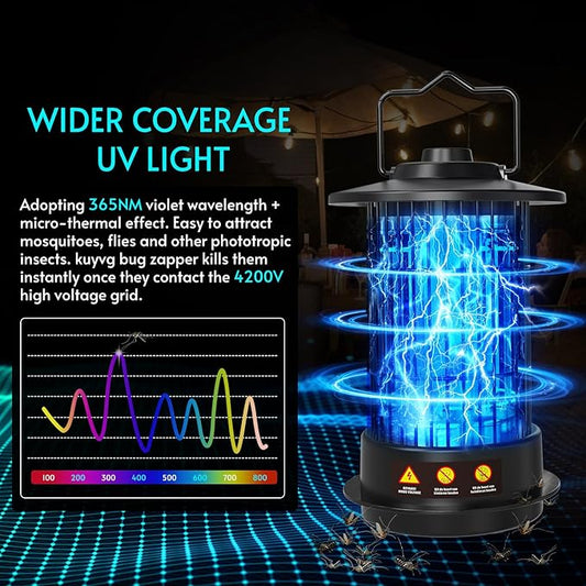 Bug Zapper, Electric Mosquito & Fly Zappers/Killer - Insect Attractant Trap Powerful Bug Zapper Light, Hangable Mosquito Lamp for Home, Indoor, Outdoor, Patio (Black)