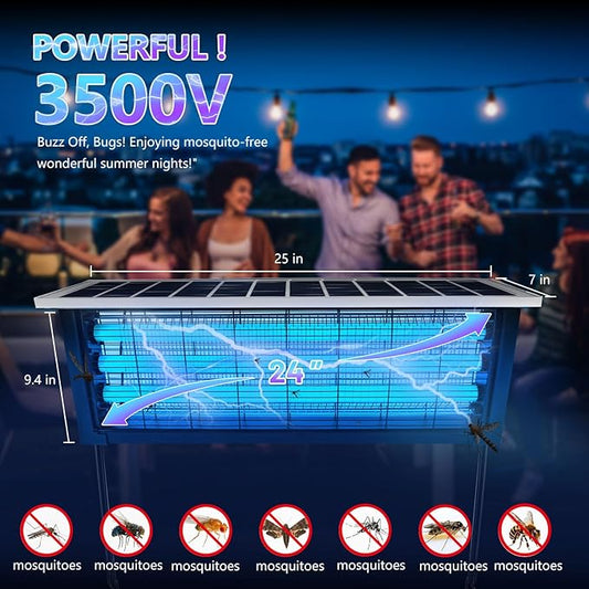 Powerful Large Solar Bug Zapper Outdoor for 4000 sq.ft, Rechargeable Mosquito Zapper with High Powered, Cordless Solar Fly Zapper for Patio Garden Backyard RV Camping Pond with 18W Solar Panel