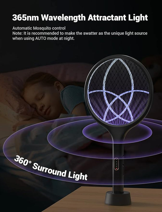 YISSVIC Electric Fly Swatter Bug Zapper Racket Dual Modes Mosquito Killer with Purple Mosquito Light Rechargeable for Indoor Home Office Backyard Patio Camping