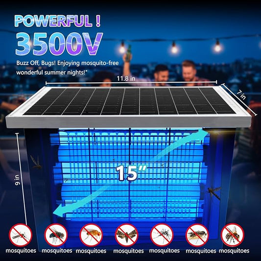 Powerful Super Large Solar Bug Zapper Outdoor for 8000 sq.ft, Poartable Rechargeable Mosquito Zapper with High Powered, Cordless Solar Fly Zapper for Patio Garden Backyard RV Camping Pond Pest Control