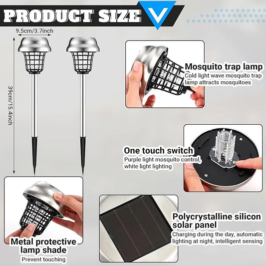 Qualirey 4 Pcs Solar Bug Zapper Waterproof Outdoor Mosquito Zapper Killer and Lighting Repellent Lamp for Indoor Outdoor Use Garden Patio, Purple and White Light(Plastic,Black)