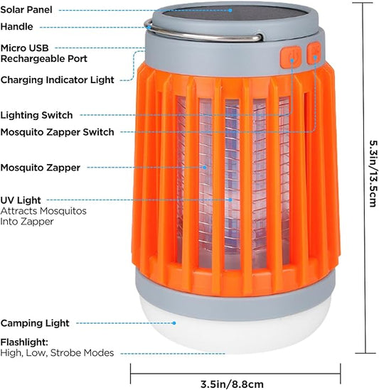 Fuzebug Buzz Blast Pro Mosquito Killer Solar Bug Zapper Outdoor Waterproof and Indoor Buzz Blast Pro Bug Zapper Buzzbug Light Flashlight Camping Buzzblast Mosquito Killer LED Light (Orange)
