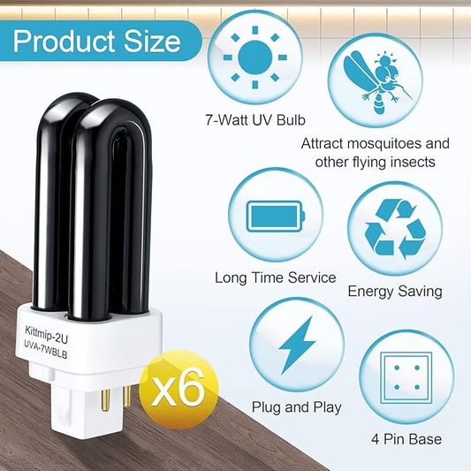 6 Packs Bug Zapper Replacement UV Bulbs 41050 Replacement Bulbs Compatible with DynaTrap Dt1050 Dt1100 Dt1250, 1/2 Acre Trap Bulb, 7w UV Light Ultraviolet Mosquito Killer Lamp