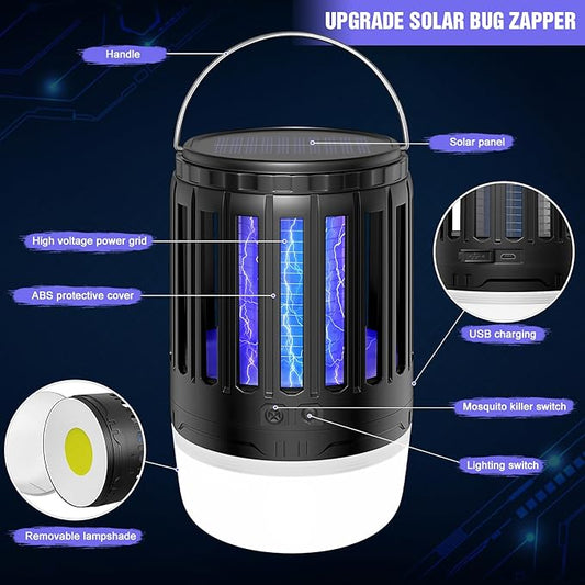 2 Pack Solar Bug Zappers Outdoor, 3 in 1 Mosquito Zapper Killer USB Rechargeable Camping Light, Waterproof Portable Gnats Flying Trap for Outdoor & Indoor
