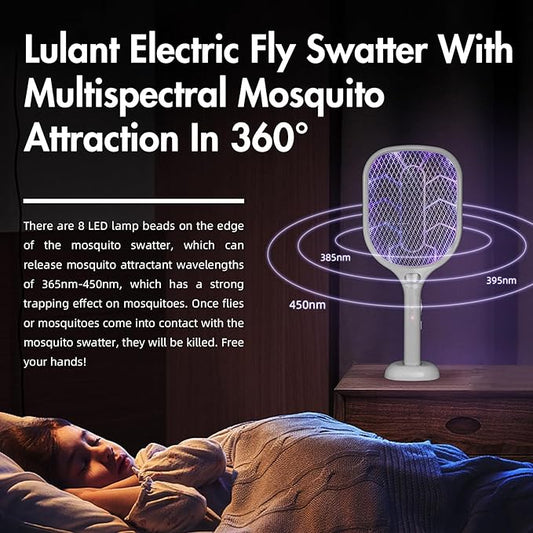 Lulant Electric Fly Swatter Racket,3000V Bug Zapper Racket,1800mA Battery Rechargeable Mosquito Killer, Type-C Rechargeable Base, Three-Layer Protective Safety Mesh for Indoor and Outdoor