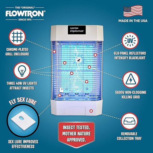 Flowtron Indoor Bug Zapper | Electric Fly & Insect Killer with 120W UV Light, Pheromone Lure Attractant, Shock Kill Grid & Reflector Panels | 2000 Sq Ft for Kitchen, Restaurant & Barn, UL Certified