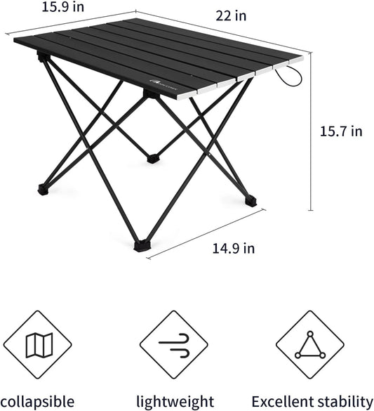 MOON LENCE Folding Outdoor Aluminum Camping Table Portable Ultralight Compact Backpacking Travel Table for Beach, Picnics, Hiking (Black, Large)