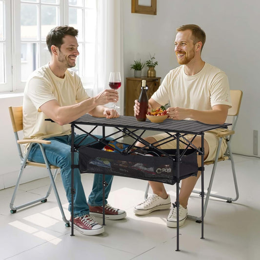 Folding Camping Table with Storage Net, 3 Adjustable Height Max 27.5" Aluminum Small Folding Table, Portable Table with Carry Handle, Lightweight, for Outdoor Indoor Travel Camping Picnic