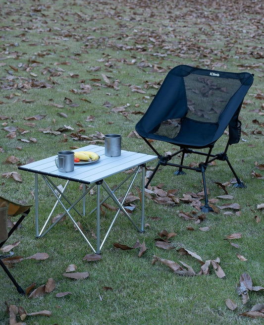 iClimb Ultralight Compact Camping Folding Table with Carry Bag (Reinforced Silver - L)