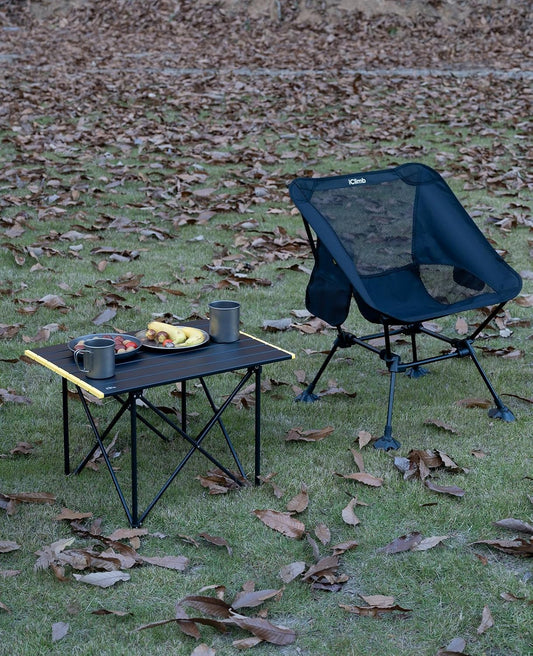 iClimb Ultralight Compact Camping Folding Table with Carry Bag (Reinforced Black - L)