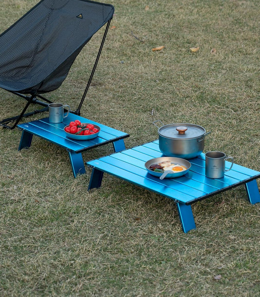 iClimb Ultralight Compact Mini Beach Picnic Folding Alu. Table with Carry Bag, Two Size (Blue - S)