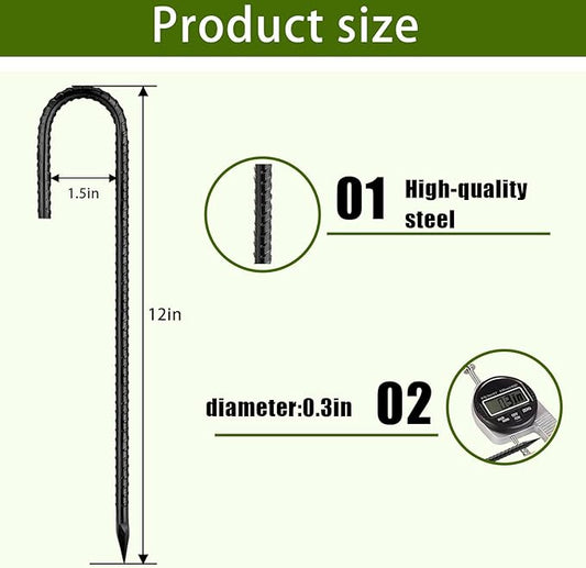 Rebar-Stakes-12-Inch-U-Shaped, Ground Stakes Heavy Duty for High Winds Galvanized Anti-Rust 10pcs Metal Stakes for Ground Heavy Duty Ground Anchors for Garden Dog Fence Chicken Coop Water Pipe