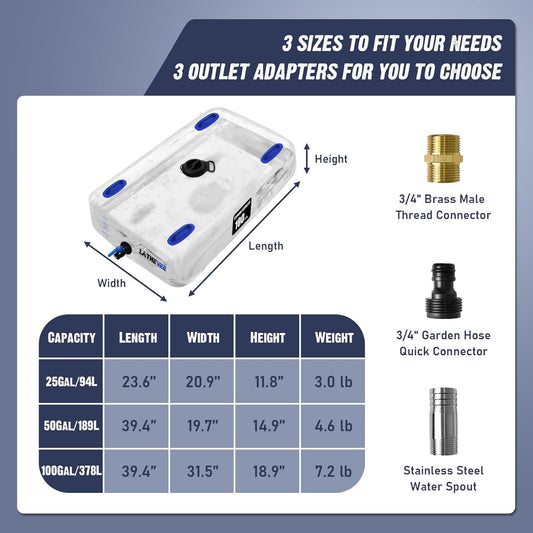 Water Storage Bladder, 50 Gallon Portable Water Tank, Transparent and Foldable with 4 Types of Interface Accessories, Suitable for Gardens, Emergency Situations,