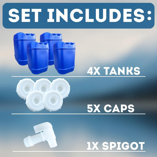 5-Gallon Stackable Water Storage Containers, 5 Gallons Each w/Lids + Spigot, Easy Fill, Survial Supply Emergency Water Storage for Camping and Disaster Preparedness, RV, 20 Gallon (4 Tanks)