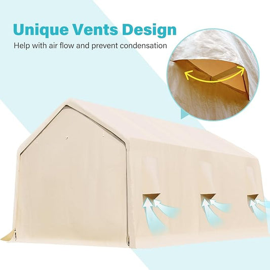 ADVANCE OUTDOOR 13x20 ft Garage Tent Carports with 2 Roll up Doors & Vents Outdoor Portable Storage Shelter for Vehicle Truck Boat Anti-UV Snow Resistant Waterproof, Beige