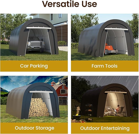 10'x20' Carport, Outdoor Round Portable Garage with 2 Roll up Doors, Heavy Duty Storage Shelter Car Canopy Party Tent, Dark Gray