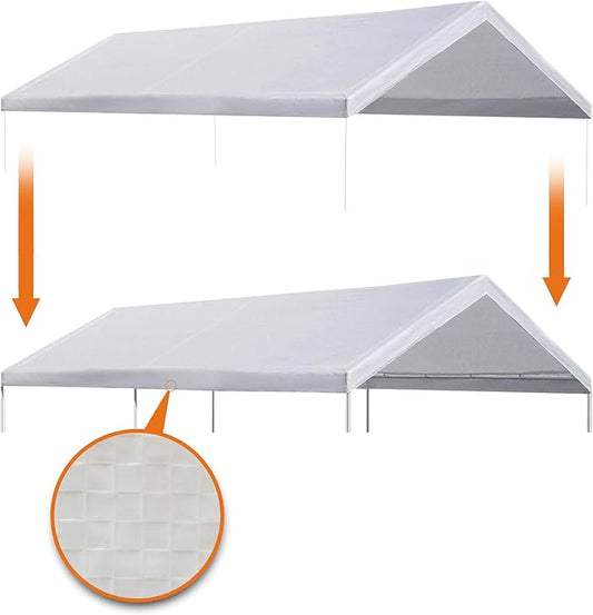 Strong Camel 10'x20' Carport Replacement Canopy Cover for Tent Top Garage Shelter Cover with Ball Bungees (Only Cover, Frame is not Includ (White, 10x20)