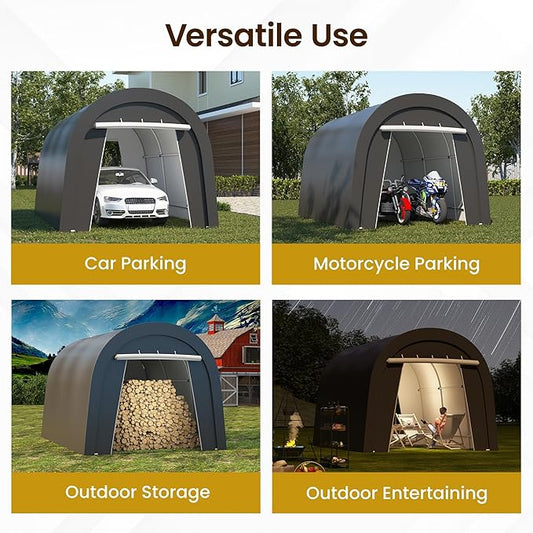 Carport, 10'x15' Outdoor Round Portable Garage with 2 Roll up Doors, Heavy Duty Storage Shelter Car Canopy Party Tent, Dark Gray