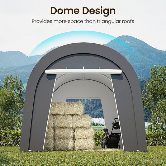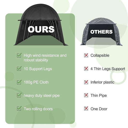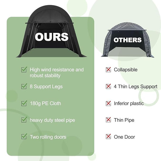 Wisteria Lane Domed Carport, Portable Garage with 2 Roll up Doors, Heavy Duty Car Canopy Party Tent, All-Season Storage Shelter Shed Carport for Motorcycle, Boat, Truck, or Garden Tools, 10' x 15'