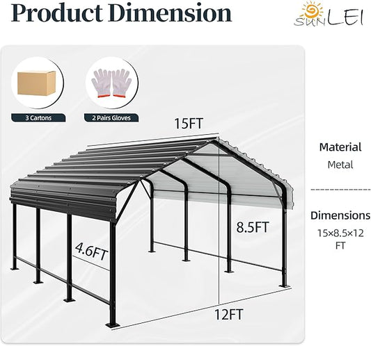 Metal Carport, Heavy Duty Metal Carport Canopy with Galvanized Steel Roof and Frame, Permanent Garage for Pickup, Bass Boat, Trucks, Car and Tractors