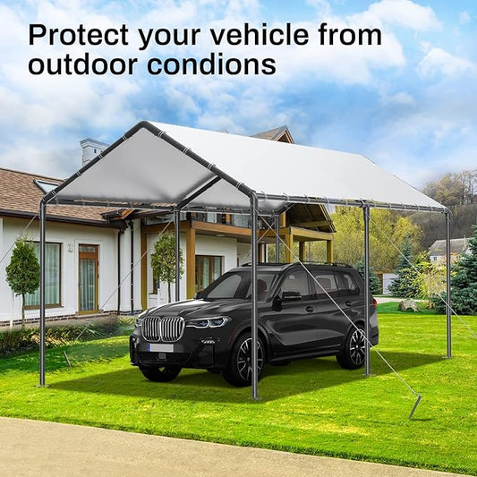 Grezone 10 x 20ft Heavy Duty Carport,Portable Car Tent Garage,All Season UV Resistant Car Canopy for Auto,Truck,Boat,Car (White)