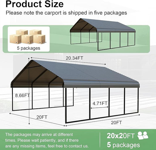 RV Metal 20x20FT Carport Canopy Heavy Duty Black Carports Kits for Garage,Aluminum Car Ports with Steel Shelter Frame Cover for 2 Car or Boats