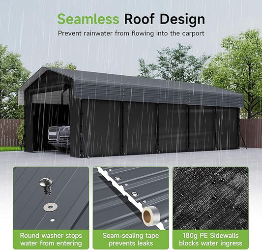 20' x 30' x 8.5' Heavy Duty Metal Carport with Galvanized Steel Roof, Steel Carport Kits Outdoor with Metal Roof, Galvanized Car Shelter for Tractors, Pickup, Boat, Car
