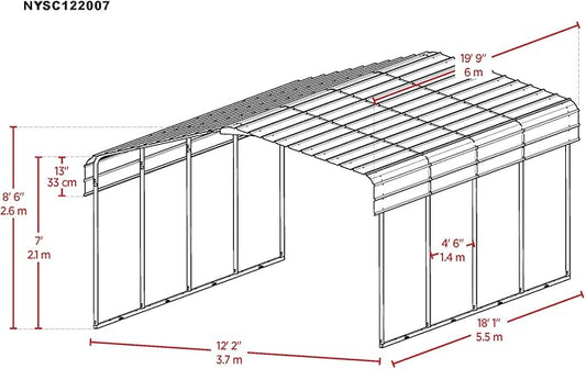 Carport 12 x 20 x 7 ft Charcoal Sturdy All-Steel Heavy Duty Canopy Shelter with Metal Frame for Parking a Car, SUV, Truck, Boat, Motorcycle, and Other Vehicles Outdoor in Your Driveway