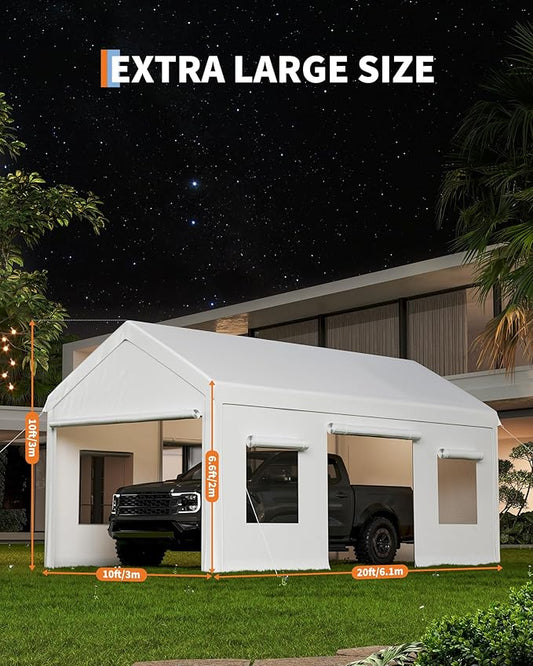 10 x 20FT Heavy Duty Carport with Roll-Up Windows, Portable Garage with Removable Sidewalls & Doors, Portable Car Tent Garage with Roll-Up Windows and All-Season Tarp, for Car, Truck,