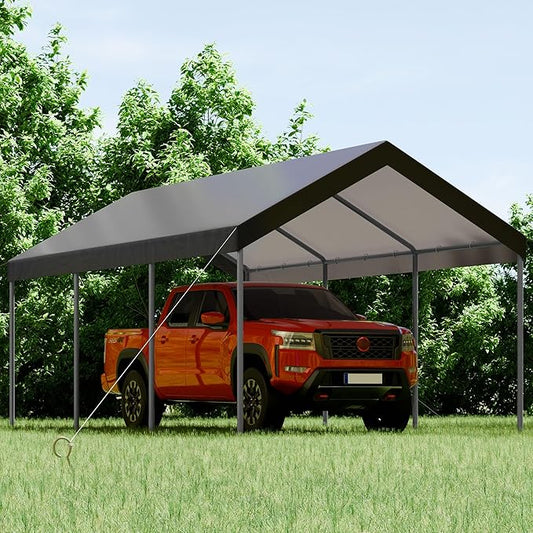 Shintenchi 10x20ft Heavy Duty Carport with UV Resistant Canopy, Powder-Coated Steel Frame, Easy to Assemble Portable Garage, Stable Carport for Car, Bike, Camp, Outdoor Storage (Grey)