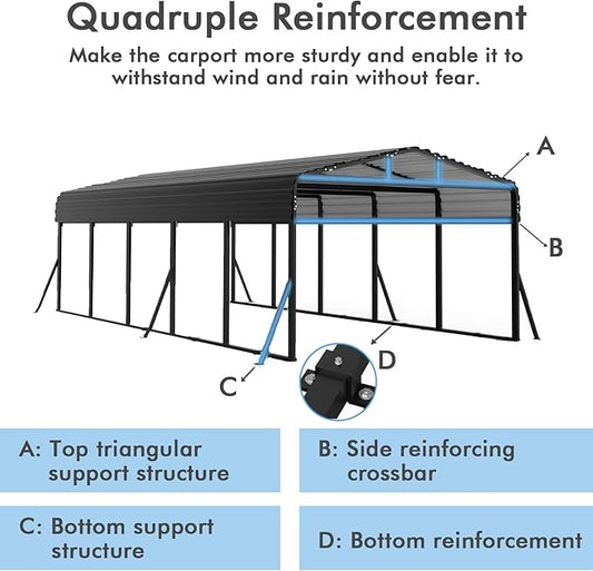 12x25FT Heavy Duty Metal Carport Canopy - Reinforced Galvanized Steel Frame, All-Weather Protection, Easy Assembly Car Port Shelter for Vehicles, Boats & Tractors