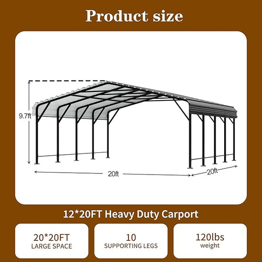 20x40 FT Metal Carport Canopy Heavy Duty with Reinforced Base and Galvanized Steel Roof & Frame, Garage Shelter for Cars, Boats and Trucks