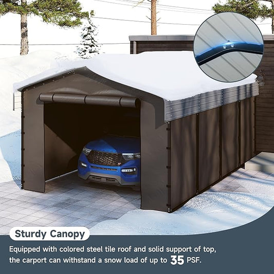 12x20 Metal Carport Carports with Enhanced Base Heavy Duty Garage Outdoor Galvanized Car Shelter for Car, Boats and Truck
