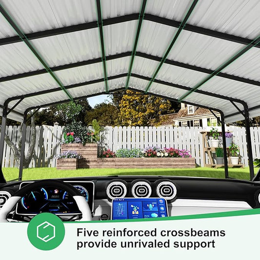 20x20 FT Metal Carport with Heavy Duty Carport Canopy, Car Port with Reinforced Base and Five Canopy Beams, Car Garage Shelter for Car, Boats and Truck