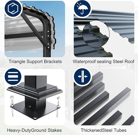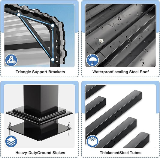Walsunny Metal Carport 20x20 FT Heavy Duty Carport Canopy with Enhanced Base, Outdoor Car Shelter with Galvanized Steel Roof and Frame Garage for Truck, SUV, Boat, Black
