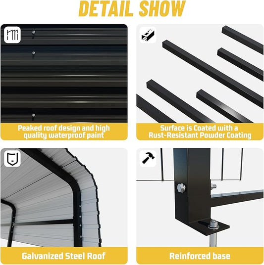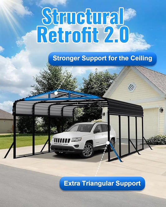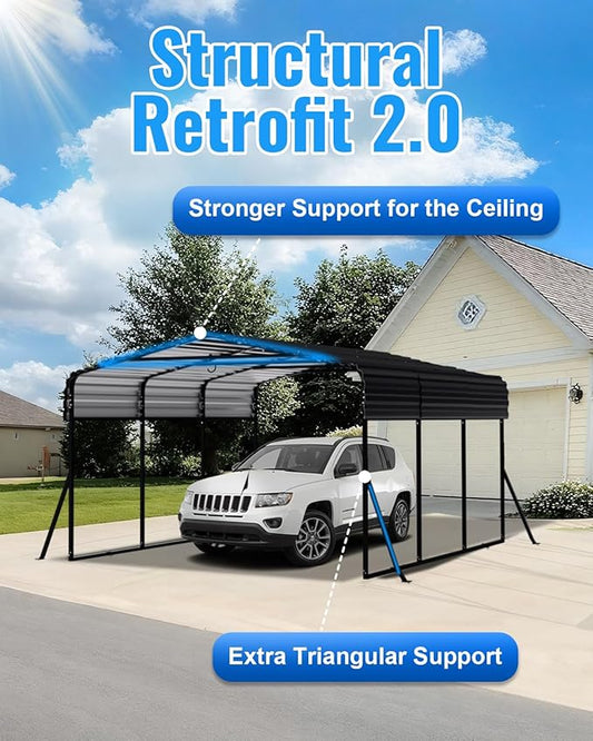10x15FT Metal Carport, Heavy Duty Carport with Reinforced Frame & Side Support Poles for All-Weather, Outdoor Car Port Suitable for Parking Pickup, Boat, Car, and Tractor