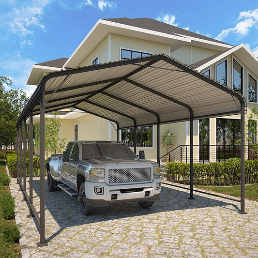 EROMMY 20x40 FT Metal Carport, Heavy Duty Carports with Galvanized Steel Roof and Frame, Sturdy Car-Shelter in All Weathers, Easy Assembly Car-Canopy for 2 Cars, SUV, Tractors and Boat, Gray