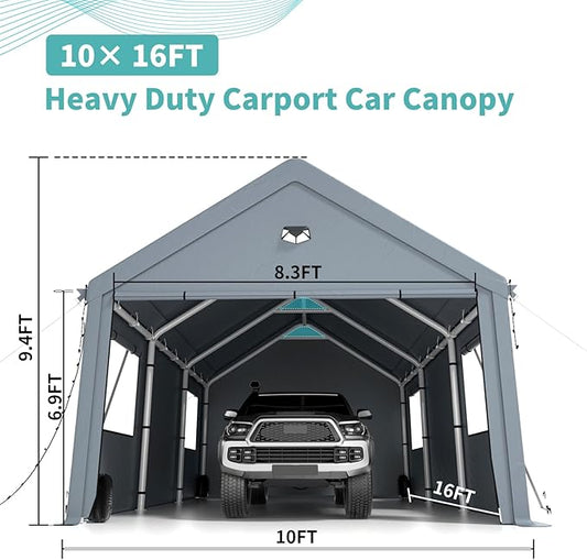 Carports 10X16 Heavy Duty,Car Ports with 180G Removable Side Walls, Carport Canopy, Portable Car Port Garage, Car Shelter All Weather,Gray