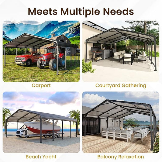 EROMMY 20x30 FT Heavy Duty Metal Carport, Carports with Galvanized Steel Roof and Frame, Sturdy Car Shed in All Weathers, Easy Assembly Car-Shelter for 2 Cars, SUV, Tractors and Boat, Gray