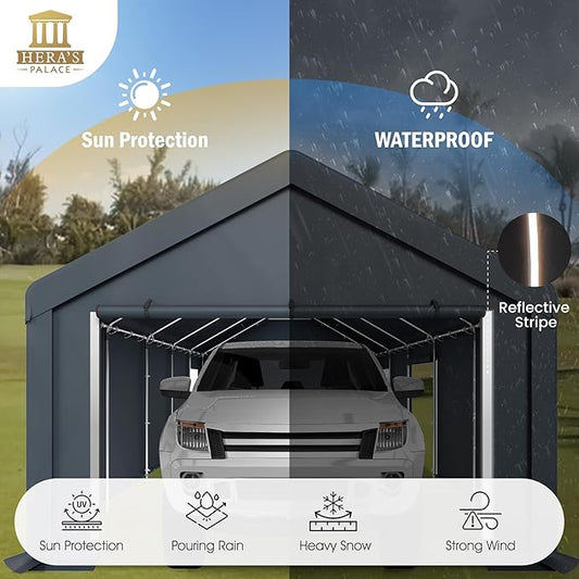 HERA'S PALACE Heavy Duty Storage Shed Outdoor Portable Car Canopy Carport Garage with 2 Rolled up Zipper Doors UV Resistant Waterproof Anti-Snow for Motorcycle Truck (Dark Gray, 13x24ft)
