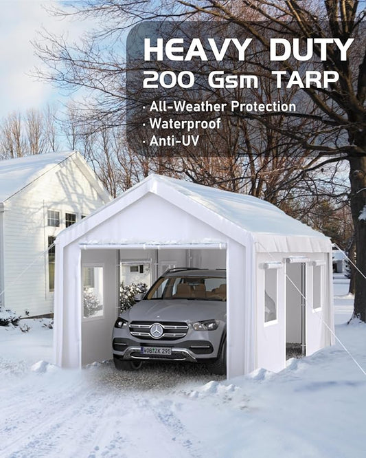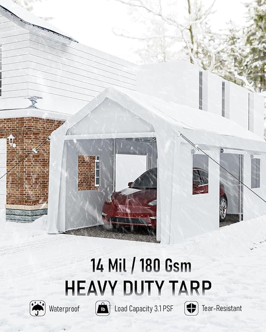 13 x 20 x11 Ft Heavy-Duty Carport, Portable Garage, 180g PE Waterproof Canopy and 8 x 1.0 mm Poles for Full-Size Pickup Trucks, Boats, and SUVs - White