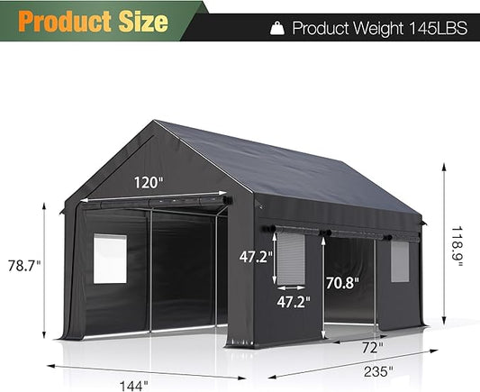 Polar Aurora Carport, 12x20 FT Heavy Duty Carport with Side-Opening Door & Roll-Up Windows, Car Port Canopy, Outdoor Portable Garage for Car, Truck, Boat, Motorcycle