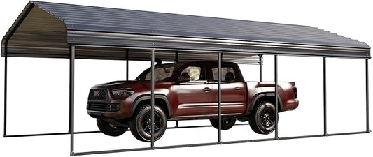PHI VILLA Outdoor Carport Canopy 12' x 25', Metal Carport Tent Heavy Duty, Garage Car Shelter Shade with Metal Roof, Frame and Bolts for Car, Truck and Boat