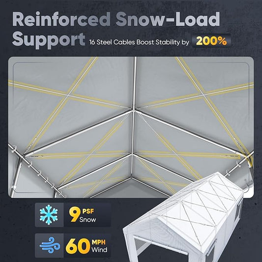 Quictent Heavy Duty 13x25 ft Carports with Side Zipper Doors & Snowproof Steel Cables & Ventilated Windows, Waterproof Storage Shelter for Car, Boat, RV, Outdoor Equipment, White