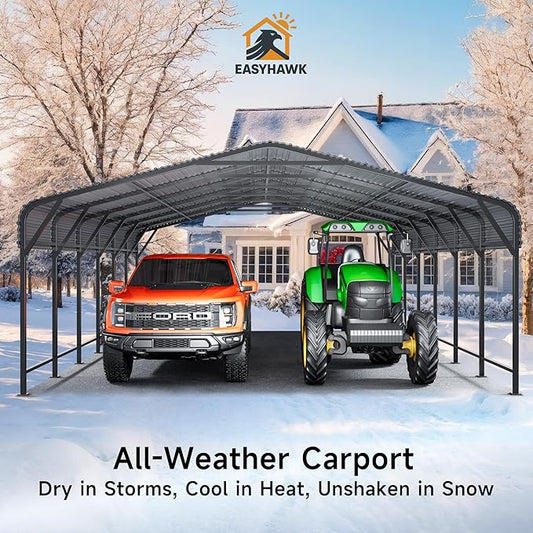 20x30 FT Metal Carport, Enhanced Base and Steel Roof for All-Weather Use, Outdoor Heavy Duty Garage Galvanized Car Shelter for Bass Boats, Full-Sized Pickup Trucks, and Tractors