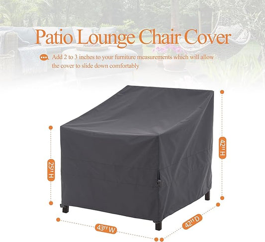 Patio Chair Covers, Outdoor furniture Cover, Heavy Duty, Waterproof Patio Chair Covers, 43W x 42D x 42H, Gray, 1-Pack