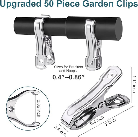 50 PCS Garden Clips, Greenhouse Clamps, Stainless Steel Greenhouse Clips for Netting, Heavy Duty Row Cover Clips with a Strong Grip for Shade Cloth or Plant Cover on Gardening Hoops