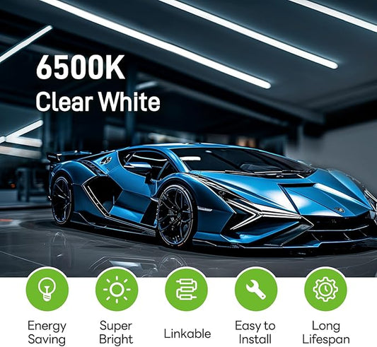 Pak 4FT LED Shop Lights, 2300LM 6500K Cool White, 20W Energy-Saving Super Bright Linkable T5 Ceiling and Under Cabinet Lighting Fixture for Garage, Workshop, Basement, Warehouse, FCC Certified, 6 Pack