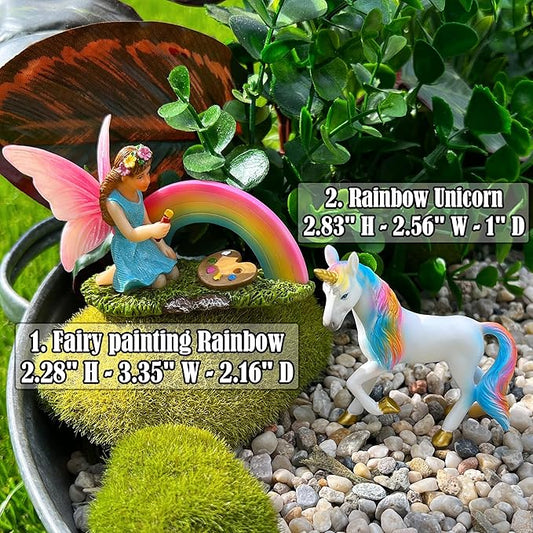 Mood Lab Fairy Garden - Unicorn Rainbow Set of 2 pcs - Miniature Figurines & Accessories Kit