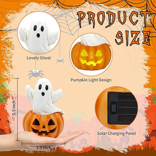 Ghost in Pumpkin Halloween Decoration: 5.5'' Solar Indoor Ornament for Home Fireplace Office Party Perfect Collectible Figurines Gift for Gothic Style Lovers